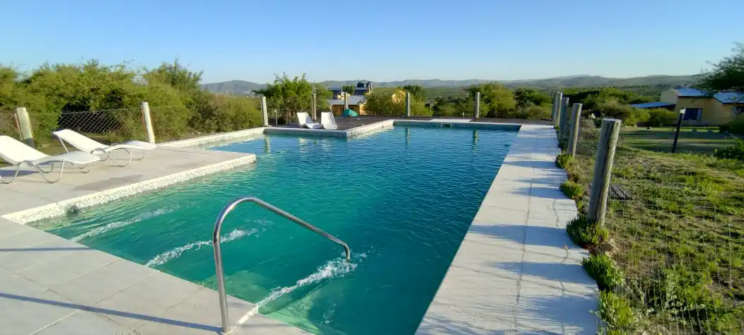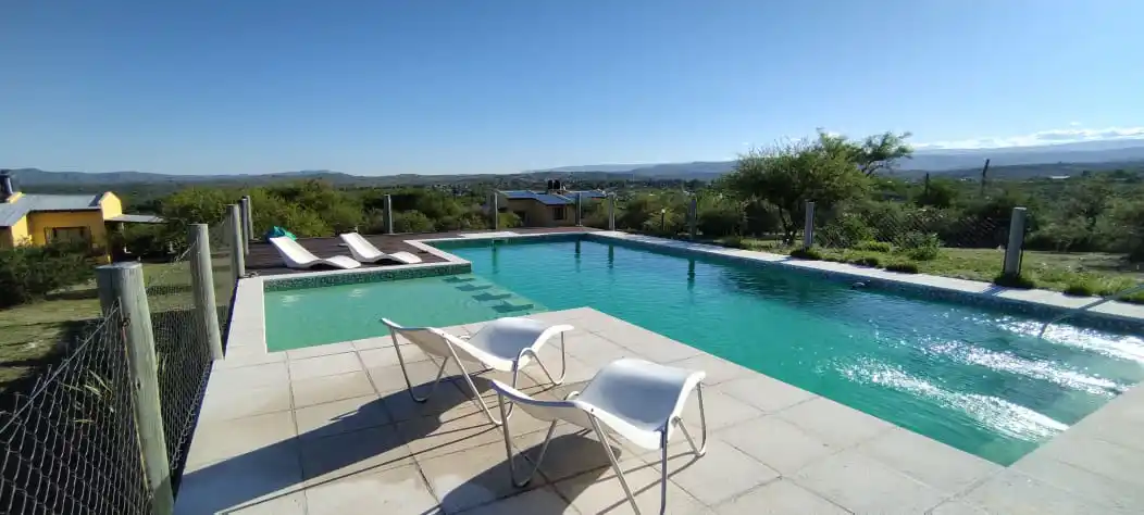 Contamos con una pileta de natación cercada de 12 x 5 Metros con solarium húmedo, lo cual permite que los niños también disfruten del agua, con una linda vista panorámica hacia Carlos Paz y Cabalango.